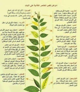 صحة هذة النبتة تعكس صحة للحوض نقص النيتروجين يؤدى الى زبلان اوراقها و اصابتها بلون شفاف و كذلك نقص الفوسفات